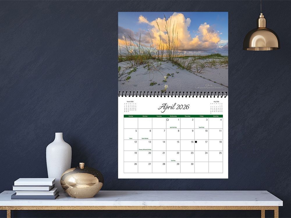This high quality calendar includes 12 beautiful images of scenery that can be found along the Emerald Coast of Northwest Florida. The 12”x9” pages are thick 100# card stock paper and spiral bound - when hanging it will be 12” x 18”.