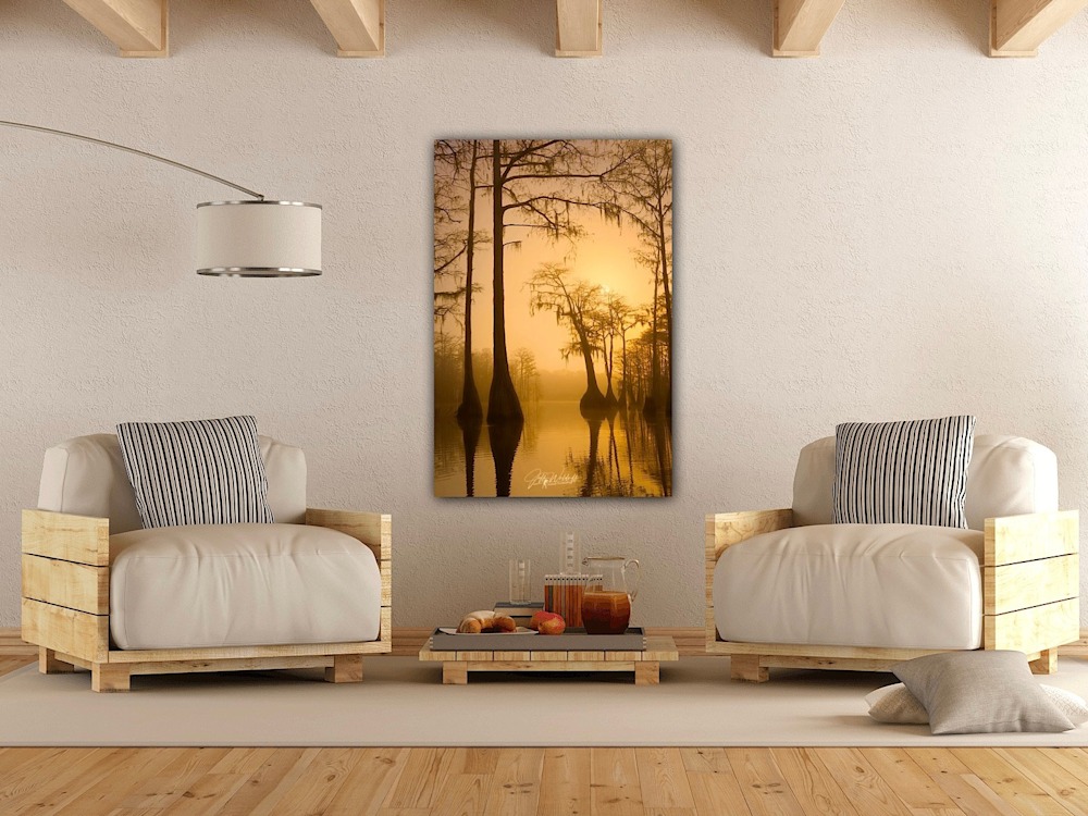 Artist Note: The beauty of fog to a photographer is that it can be very helpful in isolating a subject and bringing a soothing ambience to an image.  After seeing the forecast for fog the night before, I couldn’t resist the temptation to make the trek to this small Florida Cypress pond to drift through this spectral scene.  Under the morning’s darkness, I launched my kayak and was on the water as the sun began to rise over the pond, painting the sky with brilliant shades of orange and yellow.  Quickly, I paddled out into the still waters to meet these towering ancient cypress trees. The misty haze surrounded me like a warm embrace; enveloping me in a soft whisper of peace and tranquility.  As I drifted through the pond, the tall cypress trees rose up like sentinels as I was filled with a sense of awe while capturing the incredible beauty unfolding before me. Even though the fall colors had long since faded, I was grateful for this Zen-like experience that nature had gifted to me.
